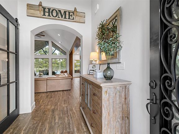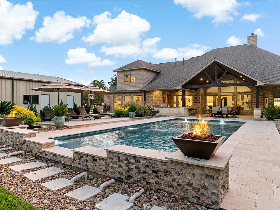 Spectacular 1.5 story home in Grand Lakes Estates on a beautiful lot with breathtaking views of the lake & golf course! The spa-like back yard's focal point is an amazing pool with fountains and fire pits. A cathedral ceiling outdoor living area is stunning and includes an outdoor kitchen. The grand entry features double steel doors with a large office just off the entry. The vaulted family room with stacked stone fireplace opens to the gourmet kitchen, complete with oversized island with plenty of seating. Stainless appliances and a beautiful vent hood are just some of the fine appointments in the home. 2 bedroom suites down including the oversized primary with lavish primary bath! A free-standing soaking tub, walk-in shower and large closet make this a spa-like experience. 2 more bedrooms upstairs and a walk out attic with 400+ buildable sq.ft. possible! Back outside, is a 40x50 insulated workshop & garage with a car lift and plumbed for a possible bathroom.