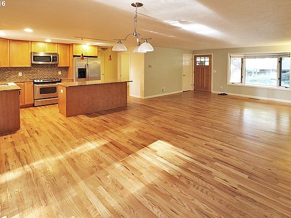 Beautiful remodeled mid Century with gleaming hardwood floors throughout! Huge great room w/granite kitchen, stainless appliances & newer cabinets. Master suite has slider to deck, walk-in closet & gorgeous bath w/soak tub & glass shower. Location is awesome-Lot is huge-level-private-it feels like you are in a sunlit forest campground in the mountains w/trails close by, yet walkable to Whole Foods, Bridgeport Village, grocery, I-5