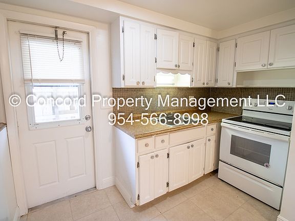 This unit is a lovely poolside 1/1 with a private patio in a classic Mid-Century Modern building in Hollywood. Monthly rent includes water, trash removal services, pool maintenance, landscaping, bi-monthly preventative pest control, and unassigned off-street parking. The apartment is fully tiled, has a front door and a back door, comes with two A/C units, and the bedroom has a very large walk-in closet. We impose a limit of 2 people in a 1-bedroom apartment, and small pets (up to 25lbs) are welcome here. There is a 1-time pet fee (per pet) due at lease signing, a limit of two pets per apartment, and dog breed restrictions are enforced. The building is a beautiful example of Mid-Century Modern architecture - classic on the outside but updated on the inside. There is a central courtyard hidden from the street that contains a pool, a sun deck, and a beautiful deck/patio area with a few picnic tables for your relaxation and enjoyment. The property also has an on-site coin operated laundry for your convenience. The property is close to both Young Circle and Federal Highway. Your new residence gives you quick access to all the shops and restaurants on Hollywood Boulevard, the specialty food stores and restaurants that have been opening up in Hollywood lately, and the numerous activities to be enjoyed at Young Circle. The location also gives you easy access to I-95 on the west and Federal Highway on the east. The Airport is maybe 15 minutes to the north, and the train station is close as well! Costs/Fees: $80 non-refundable application fee per person over the age of 18 12-month leases background screening required Renters Insurance is required at move in MINIMUM move in cost = 2 months rent (first full month of rent + 1 month of security) We do NOT collect the last month of rent in advance Contact: Concord Property Management, LLC This property allows self guided viewing without an appointment. Contact for details.