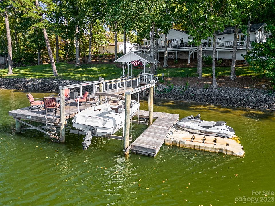 Lakefront serenity, entertaining options galore, and tasteful, thoughtful updates are just a few of the wonderful things you'll find at 1855 Aragon Beach Rd. From new mechanicals on everything you don't want to worry about (irrigation, roof, HVAC and ductwork, siding, floating dock, insulation) to every modern amenity you can imagine (gas range, primary bedroom addition, kitchen pantry, accent walls, landscaping, custom trim on doors and energy-efficient windows), this home spares no detail. The vaulted ceiling in the primary suite, extending to the bath with walk-in shower, standalone tub, and walk-in closet will awe even the most discerning of buyers. Located on 246 feet of Lake Wylie frontage, indoor/outdoor living dreams come true on over 1500 square feet of exterior decking, a serene walk to the dock with a cover for the rainy days and a floating dock with boat slip and jetski lifts for the fun ones.