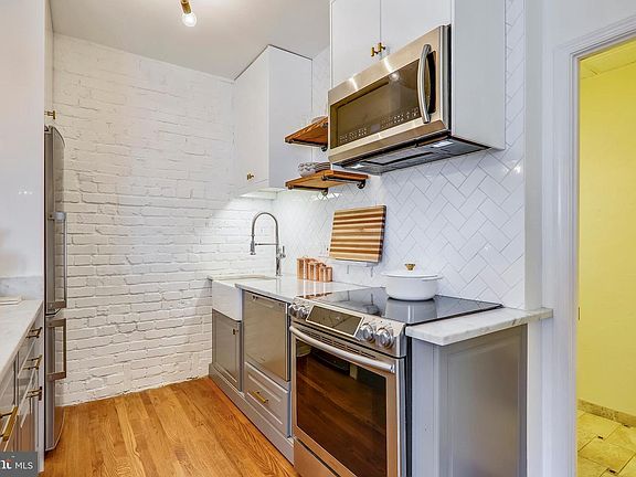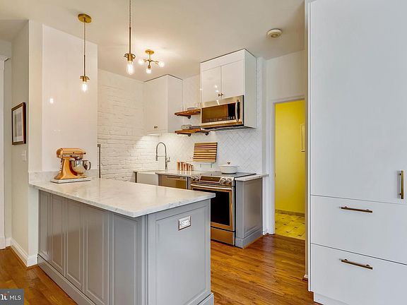 Premier Condo in The Cliffbourne! Vintage details meet designer touches in this one bedroom, one bathroom condo in The Cliffbourne, an Adams Morgan pre-war building that commands Calvert Street. The open concept living area features soaring ceilings, hardwood flooring, exposed brick and south-facing windows that maintain and bright and airy feeling throughout the day. Unwind in the living room offering plenty of room for seating and a ceiling fan for comfort. The adjacent dining area makes entertaining easy and can accommodate up to 12 guests. The Fajen+Brown designed kitchen is the heart of this home. Prepare meals surrounded by professional-grade stainless steel appliances and marble countertops while floating shelves keep all of your cooking essentials organized. A herringbone subway tile backsplash and stylish light fixtures add the finishing touches. The large bedroom is designed for relaxation with plenty of room for a king-size bed and two nightstands. Sunny windows and a spacious closet complete the room. The recently renovated bathroom offers ceramic tile flooring and a custom tile shower. Laundry facilities are conveniently located just across the hall and are maintained by the association. An extra storage locker is available on the lowest level for all of the extras! Residents of The Cliffbourne enjoy low condo fees plus easy access to all Adams Morgan has to offer including restaurants, bus and Metro transit, and Rock Creek Park! For More Information about this Listing or to View all of my Listings please visit www.TheEstridgeGroup.com or Call Me Today at 301-651-1895 to Schedule a Private Showing!
