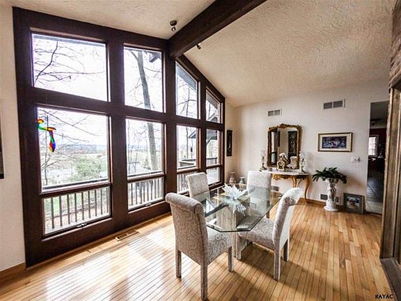 Beautiful contemporary, nestled among tall oaks with a spectacular view of the York valley. Everything is top quality & the home has been meticulously cared for. Walls of glass, soaring ceilings, sparkling hardwood floors, fantastic family room, side-load garage. Truly "One-of-a-Kind" home!!