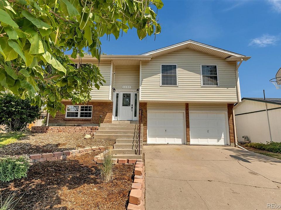 This turnkey 3bd/2ba is nestled in the heart of McCoy Hills. Abundant in natural light, the main level features a charming living room w/ wood burning fireplace, updated kitchen w/ quartz countertops, breakfast nook, 3 bd & 1 full ba. Lower level includes an add'tl living space w/ a cozy wood burning fireplace, bathroom & laundry. This area is perfect for a home office, gym, playroom, or mancave... the possibilities are endless. Enjoy CO sunsets on the beautiful composite deck that overlooks the oversized backyard that is ideal for entertaining or simply relaxing. New front door, new flooring and fresh paint throughout. Oversized 2-car garage w/ tons of built-in storage. Located close to I25, shops, transportation, restaurants & more. The house is ready to WELCOME YOU HOME!