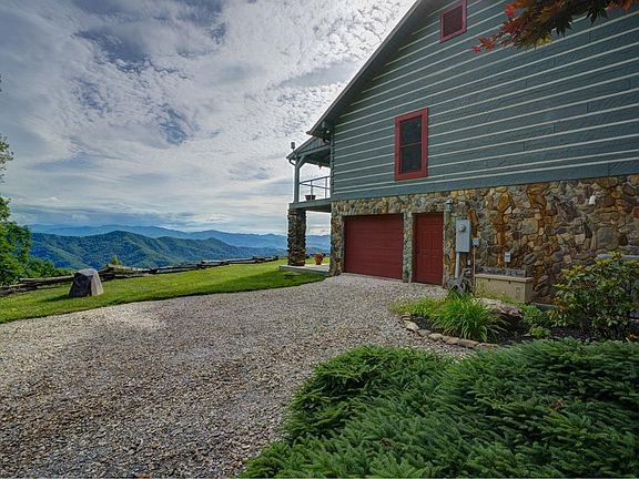 Top of the mountain! 9.6 acres of breathtaking views! At an elevation of 3,800 feet, this home offers an amazing 180 degree view of 9 mountain ranges. Walking into the country style kitchen, you are greeted with a river stone, double sided fireplace that opens to the main living area. Four skylights installed in 2020 provide an abundance of natural light. Charleston heart pine flooring is throughout the main level except for tile in the bathrooms and laundry room. The two bedrooms on the main level have en-suite bathrooms and walk in closets. Stacking Samsung washer and gas dryer remain in laundry room. Walking out to the deck/porch enjoy the amazing views. Stainless steel cable railings provide unobstructed views. The lower level contains a small sitting room with another double sided stone fireplace opening to a third bedroom that shares a Jack-n-Jill full bathroom with the fourth bedroom. There is also a one car garage and workshop housing the tankless hot water heater. The driveway is convenient for multiple vehicles and a carport is also attached to the front of the cabin. New whole house generator and whole house dehumidifier installed in 2020. New heat pump / AC unit installed in 2021.