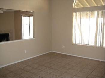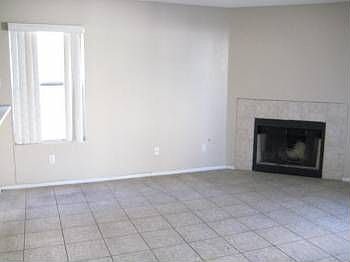 Spacious Living areas with ceramic tile flooring and fireplace. Backyard has long covered patio.