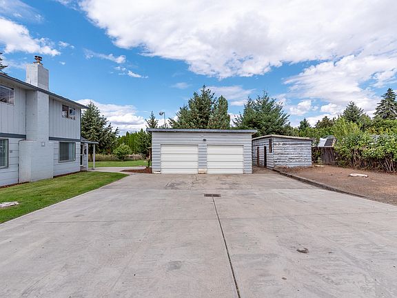 This 3 plus bedroom 1 bath home is located on two separate 1/4 acre lots. Detached 2 car garage with spacious concrete driveway for additional parking. Several outbuildings, garden area in park like setting. Large double gate on West side of back yard. Irrigation water with underground sprinklers in the front yard. Brick fireplace with wood burning insert creates a cozy living area.