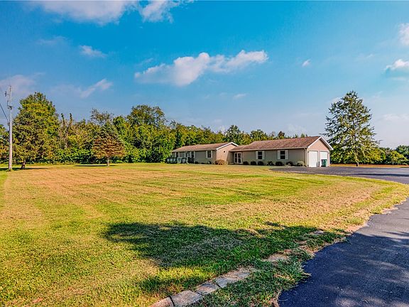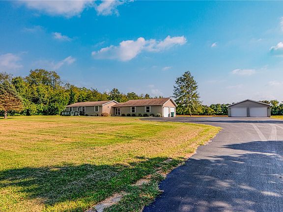 Looking for a spacious and airy home, with land, and plenty of garage space? Here it is! This 2 bedroom, 2 bathroom home sits on 2 acres of land with over 6 garage spaces! Great house for entertaining and relaxing! Large front porch, huge screened in porch, and a concrete patio all are great options to sit back, relax in peace, and watch the wildlife. Inside offers an open concept with plenty of natural light. Living room features ceramic tile, large windows, a fireplace, and a slider door to the screened in porch. Master bedroom has a huge walk in closet with a master bathroom attached featuring a walk in shower. A bonus room is also included that serves as an office with built in desk and cabinets over looking the living room. Contact your Realtor today for a walk through!