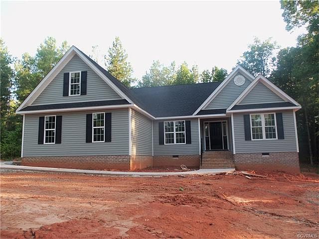Millstation 2.57 acre wooded lot. The Charleston C Furnished model with new Florida Room addition breakfast room area. Model is on the market now. Great value with many upgrades. Powhatan's premier community located at Mill Quarter golf course. One of Emerald homes most popular plans - one story 3 bedroom with finished bonus room/office over garage. Home features an open floor plan with gas fireplace and vaulted ceiling in great room. Kitchen has upgraded cabinets, granite counter top and stainless appliances including microwave. Hardwood floors thruout foyer, kitchen, dining room & great room. Oil Bronze hardware, lighting and plumbing fixtures thruout. New walk in storage room off finished 2nd floor office. Exterior has brick stoop and steps, side entry garage and deck. Secondary bedrooms with own private bath are located separate from master suite. Master bath has gorgeous ceramic tile shower. House is at trim stage Interior Photos are of model - some upgrades shown may not be in this home. Comcast cable and internet available