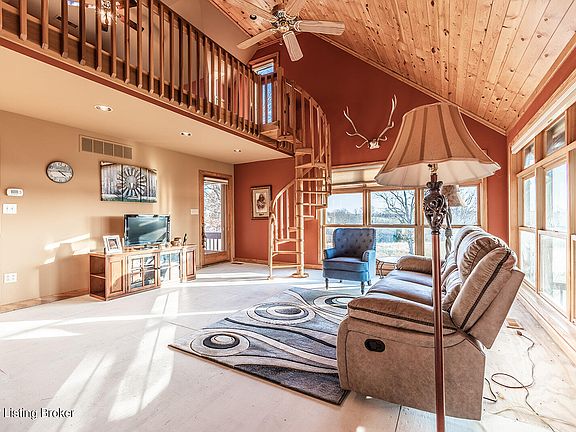 UNDER CONTRACT BACK UP OFFERS WELCOME. This spacious country contemporary residence is privately situated on a beautiful. 58.85 acre tract of land in northwestern Franklin County. You will never get tired of the amazing views! The main level consists of a living room, with fireplace, dining room with 8' sliding doors to massive rear deck, great kitchen with loads of counter space, relaxing family room with loft overhead and primary suite. The utility rounds out the main floor with exterior door and additional cabinets and sink. Upper level offer 2 additional large bedrooms with one offering the ability to have two beds, both having closets and dedicated place for dresser, full bath, along with loft over family room. Lower floor has good size finished rec room with more cabinets and full bath. In addition to two car garage, there is an unfinished room with exterior entrance which is a great place to hang out during summertime while enjoying your pool. The acreage is mostly mowed for hay with perfect amount of woods for hunting. Home features 2 zoned HVAC and whole house generator. Estate sell-as is inspection welcome. Call listing agent for more information concerning details of personal belongs. Buyer or buyers agent to verify all aspects of this property, seller has never lived there. Seller to review any and all offers Monday December 19th at 2:00pm, she does reserve the right to accept on at any time. It is not exactly clear what part of the property is in Franklin Co and what is in Shelbyville.