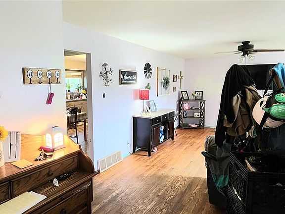Charming home nestled on 2.31 acres lined with trees. This adorable ranch-style home combines comfort and charm in a serene, country setting. Enjoy the beauty of hardwood flooring and plenty of natural light in the large living room. Updated Kitchen with laminate flooring, a stylish backsplash, abundant counter space, and ample room for your kitchen table. All appliances are included for your convenience. Three Bedrooms, each bedroom features hardwood floors, One bedroom even includes a walk-in closet. Both baths are located on the main level. Basement space is ready for your personal touch and provides walk-up access to the expansive yard. Two utility buildings provide excellent space for a workshop or Includes a one-car garage, a carport, and a paved double driveway. NEW HVAC system (2020), water heater (2017), and roof (2017). Close to town for all your needs, yet nestled in a quiet, country setting.