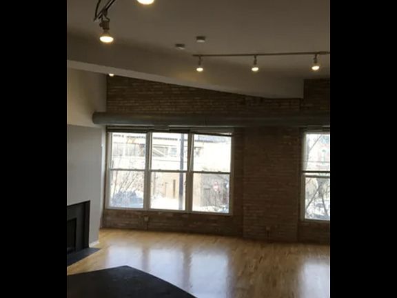 Stunning Chicago Loft. Enormous windows let in tons of natural light into this almost 2 story living room with gas fireplace. Hardwood floors throughout. Beautiful kitchen with stainless steel appliances, with sit at island. Two big bedrooms with awesome windows and lots of closet space. The apartment has in unit washer and dryer as well as central air and heat. A parking spot is available and pets are allowed. Perhaps best of all is the shared rooftop deck. Located a quick walk from the Blue Line. Check it out. It will rent quick. Good credit required. Renter pays for gas, electric, cable internet