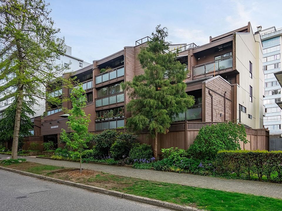 BEST VALUE in the WEST END for a FREEHOLD one bedroom. Nothing comparable gives you this much space for this price. Walker's paradise with English Bay, Stanley Park, Lost Lagoon, Coal Harbour, 4 grocery stores, 2 gyms, library, community centre, K-7 & 8-12 schools, and countless coffee shops & restaurants all within 10 minutes! BIG (683 ft2) and QUIET (only 1 common wall), this condo features an UPDATED kitchen & bath, and private, partially covered PATIO. The building has completed several major updates recently including rain screening & new siding, balconies, windows, roof and lobby/common area renovations. In-suite laundry ok with approval. 1 parking & 1 storage included. Pets allowed. Rentals allowed - currently at max (4). Quick possession possible. Easy to show. OH: July 16 & 17th