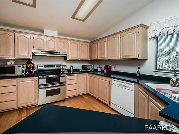 Excellent home and property with panoramic views of Willow Lake, Granite Dells and San Fransico Peaks. Extra storage room or livable space in the home plus even more storage off the garage. SPA room off of the master suite. Vaulted cielings, sky lights and open floor plan. Front and back decks to take in the scenory. Truely an excellent home and great condition.