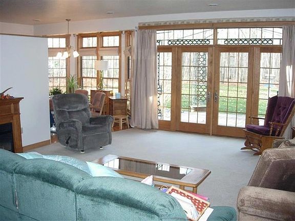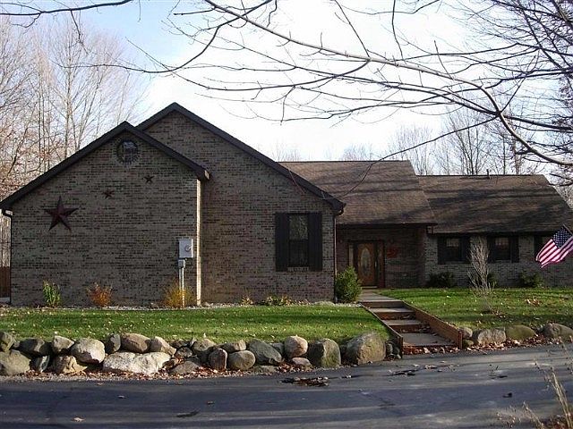 Private wooded four acres with long curving paved driveway with pond this 2000 sqft brick ranch offering the perfect setting for retirement living 2bedrooms two baths with large living room with full wall patio doors to the wraparound deck overlooking wildlife and morning sun to start your day.Like new on the interior and all brick exterior for turn key living..Hot water heat and central air for the summer.Large kitchen with dining area overlooking the backyard hickory cabinets for a country look (Internet 5988131)