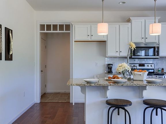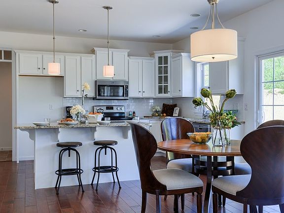 The Mackenzie by Garman Builders, Inc. is a 2-story home with 4 bedrooms and 2½ bathrooms. The first floor has an open concept floor plan with kitchen, breakfast room, and family room, which has a gas fireplace. The kitchen features an island, granite countertops, tile backsplash, a white cast iron farm sink, and stainless steel appliances. The first floor also has a study, powder room, and pantry, and there is a drop zone area when entering the home from the 2-car garage. Hardwood flooring is found throughout the first floor. The second floor contains the master suite with its tray ceiling and 2 walk-in closets. There are 3 bedrooms, an additional full bathroom, and the laundry room on the second floor as well.