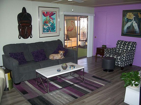 This house features two bedrooms, 1 1/2 baths, large living room with picture windows, dining area, kitchen with new gas stove and new dishwasher, garbage disposal and refrigerator, full size washer and gas dryer, waterproof laminate flooring in the Livingroom, dining room, kitchen and hallway. Central air and heating. Dual pane windows in both bedrooms and bathrooms. Ceiling fans in all rooms This home sits back from the street by 35 feet and has a very large backyard which is very private. In addition is a very large, covered porch, with a small upper deck to sit and relax. The driveway can accommodate 4 vehicles, with half of them covered. There is also a large 10x10 storge unit with multiple electrical outlets. The home is being sold AS IS and you must complete a park application for residency.