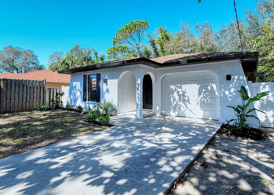Wonderfully updated 2/2 block home with a single car garage in a fantastic Sarasota location. This home features so much of what the modern buyer is looking for: an open kitchen with a large island and all countertops done in a high-level granite, a split floor plan with spacious bedrooms, and beautifully remodeled guest and master bathrooms. The entire house is outfitted with a gorgeous wood-look tile. All there is to do is move right in. The exterior has just been freshly painted and new landscaping adorns the front, making for delightful curb appeal and one of the cutest homes in the neighborhood. Other noteworthy items include: a BRAND NEW 2023 YORK AC unit, a large screened in lanai, a completely fenced-in and well-sized backyard, 2015 roof, 2018 hot water heater, all new electrical service to the house (meter can and mast), brand new door from garage to the side yard, and a new septic drain field. What cannot be overlooked is 1855 Wharf’s location: not only close to the south bridge onto Siesta Key and the shops and restaurants of Gulf Gate, as well as those all along 41, but just down the street from the home is a quiet kayak launch point that brings you right into Sarasota’ beautiful intercoastal waterway. Avid kayakers or even those who partake more casually will recognize this spot as a perfect launch point for a day out on the water. Whether it be snow-birds, first-time home buyers, investors, or those just looking to enjoy all that Sarasota has to offer, this property is fitting for any buyer. Schedule your showing today (and be sure to bring your buyer to the Wharf Rd kayak launch, just on the other side of Vamo!)