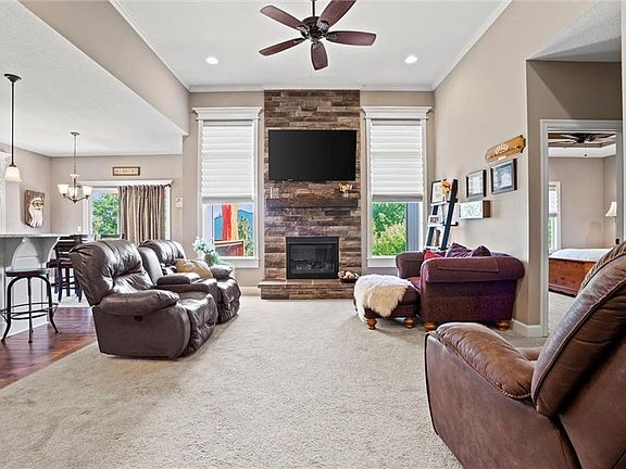 - Features: Carpet, Ceiling Fan(s), Fireplace