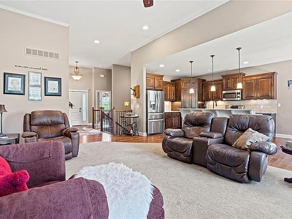 Single-level living at its finest is found in this home! Beautiful hardwood floors will greet you at the entry and lead you into the dining and kitchen areas where you’ll find a large island, granite countertops, stainless appliances, pantry, and rich stained cabinets. From there you’ll be able to visit with friends or family enjoying the living room with its cozy carpeting and stone fireplace complete with gas logs and a heat circulator. Also on the main level you’ll find the spacious master bedroom with double vanity bathroom, walk-in closet, and attached laundry room, and a second full bedroom and bathroom. Outside you can kick back while enjoying your large backyard with no homes beyond the back fence giving you plenty of privacy. Or entertain to your heart’s content with the double-level deck, second family room in the walk-out basement, and a gaming area, plus two more bedrooms and a third full bathroom. Spend some time in the neighborhood amenities of a pool, pickle ball court, fire pit or play in the open green space.