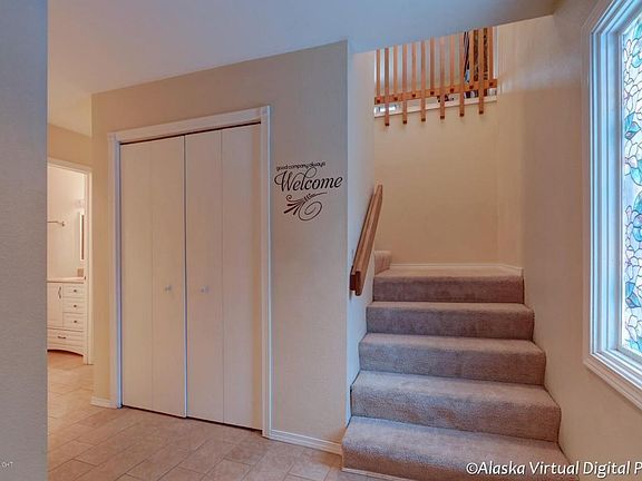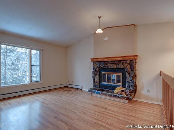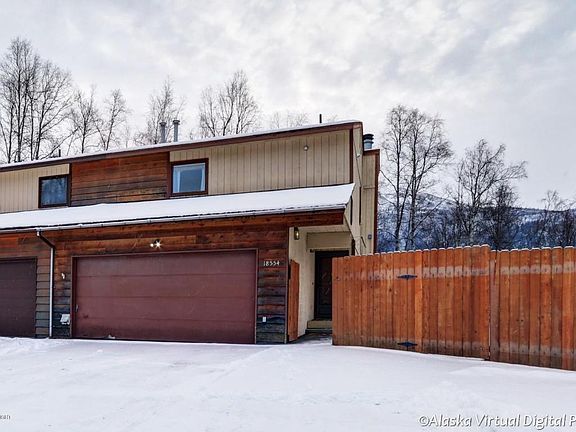 Beautiful 3 bed, 2 bath, 2 car garage home in the heart of Eagle River! Located at the end of a cul-de-sac, this home backs up to a beautiful mountain view. Walk inside to two lower level bedrooms with a bathroom, and upstairs hosts the kitchen/living/dining area, with the master bedroom, private bath, and walk in closet on the main living level. Very low dues!