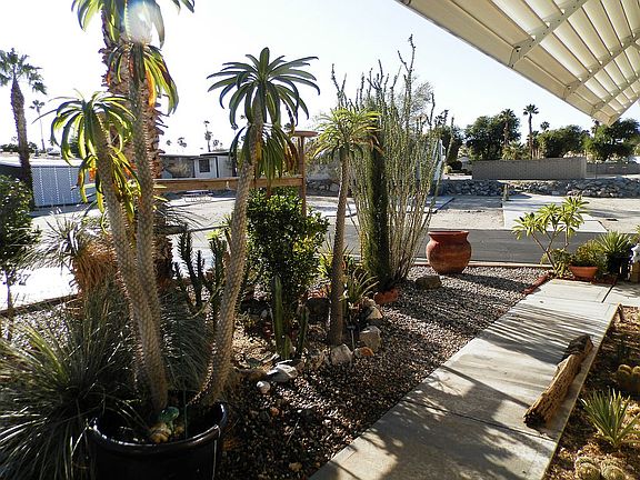 FOR SALE: DOM1987 DFS1988 Silvercrest KINGSBROOK Doublewide Manufactured Home located in Desert View Mobile Home Club (55+ Senior Park) $70,000 NO AGENTS PLEASE! The MHC: Includes swimming pool, sauna room, mineral spas, club room, pool table, library, big TV. This park is a secluded gem tucked away from the city center. The Manufactured Home As-Is: 2 Bedroom 2 Bathroom with add-on Triple wide room bump-out that can be used as a home office/art studio. The house sits on a corner lot so there is plenty of open space. NO HOA! Lot rent is currently a low $434 a month, with all utilities it runs about $520 in the low season. County Property Taxes are $160 annually. This home is in great shape and ready to move in. It has vaulted ceilings which are a plus unlike most manufactured homes that are low flat ceilings.…it also has drywall/sheetrock for interior walls instead of the typical mobile home thin paneling that many homes have. The drywall/sheetrock also keeps it much cooler and quieter than than other homes. It has an enclosed workshop room area (182sqft) in the garage/carport space. The workshop has all the major power tools including grinders, saws, drills, tile cutters as well as hand tools and even extra scrap wood to start a new hobby. There is also a wide array of yard and gardening tools as well. The workshop space has full size double doors so it can also store the Golf cart. The Golf cart is also included in the purchase! and runs great out in the nearby desert! There is a nice side yard for relaxing near the chimney fireplace, and the rear of the house has a nice dog run as well as a garden area with overhead terrace and patio. Another side access passageway supports entry to the garage/carport area. The front yard is larger than most any in the park and has plenty of wonderful desert plants, flowers, fruit trees, and bird feeders. The front-side also has a porch/patio area with a large-beautiful garden box and iron gliding bench for relaxing. The area just to the rear of the park a few feet away is open desert and is great for morning hikes and the view of the San Jacinto and San Gorgonio snow-capped mountains. Updates: The kitchen has brand new granite countertops and stainless steel sinks. The bathrooms have brand new marble countertops and sinks and new toilets. The entire house both inside and out has been painted! There is brand new luxury vinyl tile flooring throughout the house. There is a stainless-steel triple door refrigerator and stainless steel four burner gas stove with stainless-steel hood which are only a couple years old, also a stainless-steel microwave, dishwasher, and full-size front-loading washer and dryer, which all work great. Furniture: We have already removed most items from the house except the master bedroom set (Cherry wood from Indonesia 1 king bed 2 nightstands and 2 dressers in the master bedroom, small kitchen nook table and 2 chairs. There is an auto-reclining couch set but it’s a bit old. Pretty much everything else as seen in the photos can stay if you want it free in terms of furniture including the 55inch LG Web TV. Or just let us know if you want it vacant. I'm also willing to leave the home office angle desk combo and desktop HP monitor with all-in-one printer for the home office/art studio space. There is also a Free TV antenna for local TV if you want it. And there is high speed cable internet access. Notes: We are moving overseas after 8 years here. We are still living here although we travel frequently so we need to make arrangements for any viewing. Important: Before purchasing the house you should make sure to get your application approved for residency from the Desert View Mobile Home Club office management. This process does not usually take long however there is a simple credit check involved. Once approved you can usually move in same day.