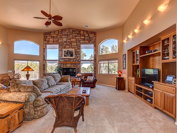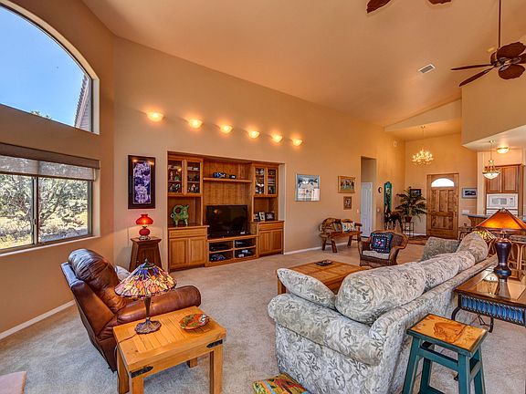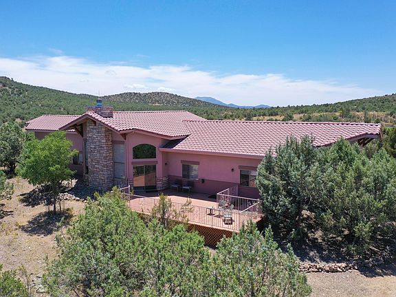 A rare 28.5 acre gem located in Crossroads Ranch bordering Arizona State land for riding, hiking & privacy. Fully fenced & ready for your horses, this is a slice of southwest heaven with rolling hills, pines & junipers, and abundant wildlife. The 3295 sqft home has views of the San Francisco Peaks, red rocks of Sedona, and Granite Mountain. The home features a spacious split floor plan with soaring ceilings, stone fireplace, built in entertainment center. Three bedrooms, an office w/closets (that can double as aformal dining room or 4th bedroom) plus a bonus room flex room provides plenty of options for your consideration. The spacious gourmet kitchen is light and bright with custom cherry-wood cabinetry, 4-person breakfast bar island and a garden window overlooking Granite Mountain.