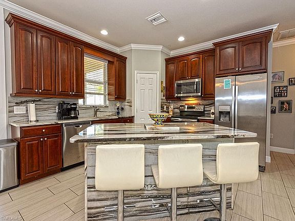 WOW, TALK ABOUT AS RARE AS THE HOPE DIAMOND!! This beautiful residence boasts 3 BR and 2 1/2 Bath. Special features of this home include an Open floor plan, Granite counter tops, Cherry Cabinets, Stainless Steel appliances, Breakfast bar, Porcelain tile and Hardwood flooring throughout, Plantation shutters, washer/dryer and Crown molding. The spacious master suite has a walk-through shower and HIS and HER walk-in closets, vanities and water closets. The generously sized guest bedrooms are on the opposite side of the home. Outside for entertaining is a concrete and paver extended lanai PLUS a screened patio with Porcelain tile. Professionally landscaped and the backyard has a beautiful white privacy fence. An oversized 2 car attached garage with work benches and extra wide driveway. AC has an ultra-violet light.