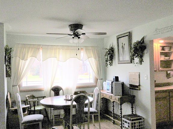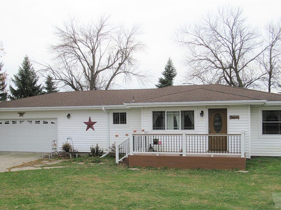 Golf Course Location! On the East edge of Forest City. Almost an acreage with oversized lot--this 2 bedroom home offers many updates, spacious rooms with natural light! Open Living Room and Dining Area w/updated laminate floors. The kitchen features quality custom built cabinetry w/ample counter space for a good working kitchen. The two bedrooms are nice sized w/step in closets and oak hardwood floors. Updates include windows, siding, front deck, back patio, garage door, openers, and more! Full unfinished basement also! The yard offers ample space between neighbors and a storage shed for garden supplies or ad'l outside storage. Call to see this home today!