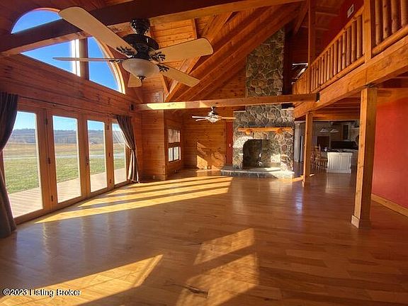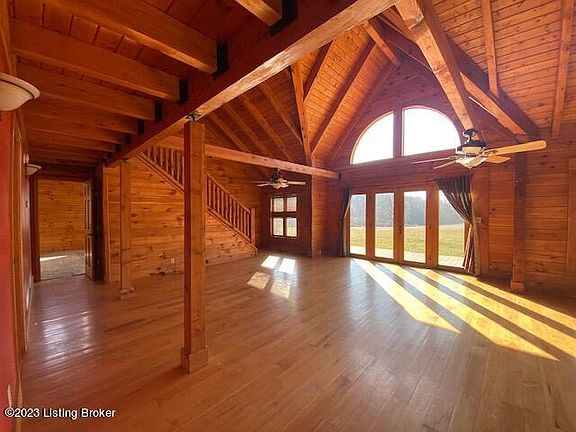 Take a look at this little piece of heaven located at 1856 Barnes Rd in Bardstown, Ky, Bourbon Capital of the World!! Three-bedroom 2.5 bath custom-built log home situated on 12 amazing acres with 30x70 building with log siding awaits you! Wonderful curb appeal greets you with the WOW factor! Stunning hardwood floors, open concept floor plan & windows galore which provide an abundance of natural lighting. Plenty of room for oversized furnishings in the vaulted Living Room with beautiful stone fireplace, perfect place to cuddle up with a good book on those cold winter days & provides amazing views of the countryside that backs up to Bernheim Forest. Kitchen features lovely white cabinetry, center island breakfast bar & comes equipped with dishwasher, microwave & range/hood. Separate Laundry Room is an added feature. First floor vaulted primary suite with walk in closet. Tiled Primary Bath offers double vanity sinks, walk in shower, & wonderful whirlpool soaker tub, great place to relax after a long day. Venture upstairs to find two additional spacious bedrooms & full Hall Bath. Plenty of room for everyone with 2400 sq. ft. of comfortable living space. Outdoor lovers' paradise awaits you with the covered rear deck, patio, partial completed in ground pool & hot tub, perfect for outdoor enjoyment & entertaining. Large 30x70 building with log siding is the handy man's dream. All this on 12 beautiful level acres with some scattered woods. Minutes from all the amenities of Historic Bardstown, Ky including shopping, schools & restaurants. Give us a call today to schedule your personal tour of this amazing property!