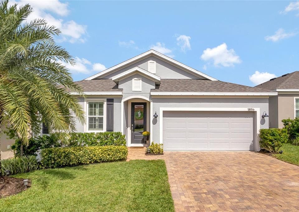 Are you looking to live in a community that has year round activities and the holidays are insane? Welcome to this exquisite four-bedroom, two-bathroom home where luxury and style meet! The study features custom barn doors and plantation shutters, making it a great space for an in home office. This house is equipped with 8-foot doors throughout, combined with luxury vinyl plank flooring, creating a bright and spacious atmosphere. The laundry room boasts shiplap walls and butcher block countertops, a perfect blend of function and style. Each bedroom comes with closet built-ins, offering ample storage space and organization. The gourmet kitchen features quartz countertops, gas stove and an oversized island, great for entertaining. The spacious family room features a shiplap accent wall which provides the perfect spot for relaxation and entertainment. The owner's suite offers walk-in closets with custom built ins, automatic blinds and a tray ceiling. The ensuite features a luxurious walk-in shower with a digital control panel ensuring the perfect temperature every time you step in. Step outside to the fully fenced backyard, complete with a covered lanai and a gas hookup for grilling. An ideal space for outdoor living. You’ll have access to a zero entry community pool and a covered playground. If you’re looking to get to know your neighbors, join in one of the many activities going on. Whether you’re a book worm looking for a book club, or just want to hang out at one of the monthly wine downs. There’s something for everyone. Don't miss this opportunity to turn this house into a home!