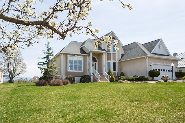 NEW CARPETING, FRESH PAINT, UPDATED MASTER BATH! .....SIMPLY BREATHTAKING VIEWS! Beautifully maintained, bathed in light and enhanced with high R factor insulated, durable and efficient EIFS exterior finish. The home design captures east and west views! Beautiful black walnut hardwood, tile and carpet floors, lighted stairway niche, formal living room, dining room, high ceilings and a bright exceptional kitchen! The master suite, laundry (with chute) and double car garage are on the main level. Guest rooms and bath are on the upper level. Central Vacuum, radon mitigation system, copper plumbing, wine room and great theater room in the lowest level plus amazing storage and rough-in for another bath! SHOWING FOR BACK-UP CONTRACT.