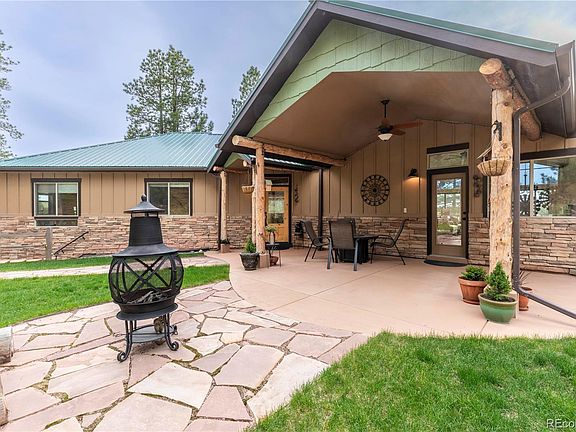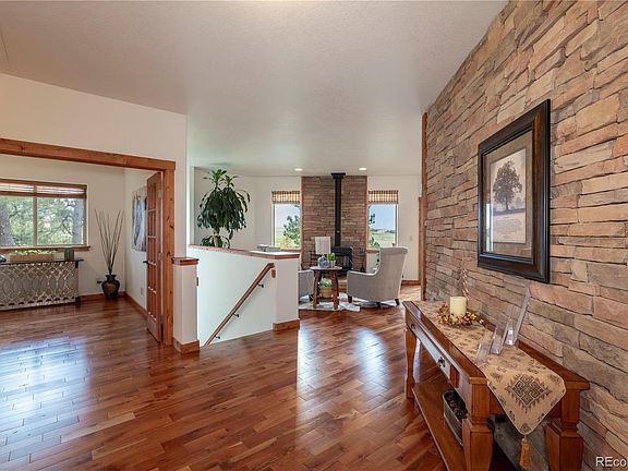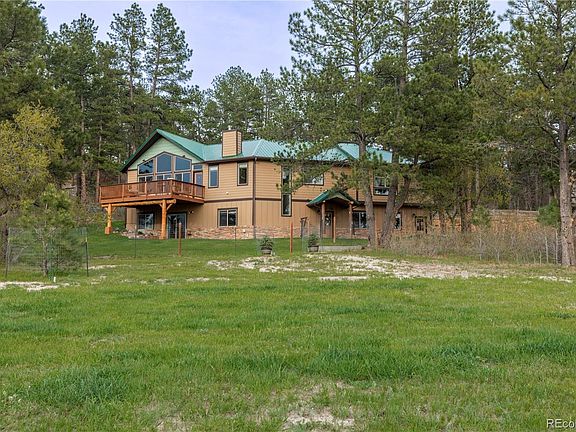 MUST SEE… custom-built home on acreage in Franktown!! This near-new Property, purchased from the Builder in 2019, has been kept in immaculate condition! And it boasts amenities & features galore!! The gourmet Kitchen includes high-end SS appliances (Viking, Bosch & Monogram), slab granite counters, knotty alder cabs w 42”T uppers, custom-tiled backsplashes & a large island! The Great Room highlights include vaulted ceilings, cherry wood floors & an expansive window wall w a spectacular CO Front Range vista! Enjoy the natural beauty of CO summer sunsets from the main level deck! Ample dining space & a cozy seating area w a wood-burning stove round out the Great Room features! The main level Primary Bedroom Suite provides a walk-in closet, adjacent Laundry Room (washer/dryer included!) & 5-piece Bath with an antique, clawfoot tub! The Office is located near the Entry Foyer & is outfitted with lovely French doors! With an additional 3/4-BA on the main level, the Office can easily be converted into a Bedroom, if needed! The lower-level walk-out basement was professionally finished by the Builder & features a complete second Kitchen for longer-term guests or family! In addition, the lower level has 2 BRs & a Full-BA, as well as a Family Room! This country estate has a 2-car attached garage w insulated doors, opener/remote, coated floor & storage shelving, as well as a detached garage/pole barn w oversized door & space for 2 additional vehicles! Sited on just over 5-acres, there’s also ample room to park additional vehicles or RVs! Finally, an outdoor entertainment area, with a hot tub/spa under the towering ponderosa pines, makes the perfect place to host parties & special events! Located only 3-miles from Franktown, this Property offers easy access to metro-Denver, as well as being just a short trip to DIA! Nearby metropolitan amenities, balanced by a peaceful, natural environment… this home in Russellville can be yours to enjoy day-after-day!