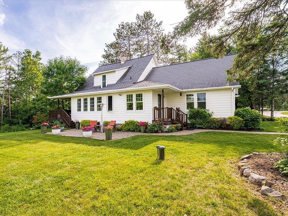 Exceptional Country Estate with Modern Amenities and River Frontage! Discover unmatched space, style, and versatility at this stunning 5+ bedroom, 4-bath retreat nestled on nearly 17 acres just minutes from downtown Two Harbors. Thoughtfully designed with both luxury and functionality in mind, this home boasts a spacious private primary suite with a walk-in closet, spa-like bath featuring jetted tub and separate shower, and main floor laundry for convenience. Enjoy cozy evenings by the wood-burning fireplace and entertain in the chef-inspired kitchen with stainless appliances, pot filler, and a high-end Electrolux range.Upstairs offers three additional bedrooms and a full bath, while the finished lower level features a large rec room, additional bedroom, office, gym space, and ample storage. Outside, the amenities are just as impressive: a dream garage with new insulation (unheated), Level 2 EV charger, and professionally installed epoxy floors. The separate workshop is fully heated with its own geothermal system and in-floor heat—perfect for projects or business use. The newly rebuilt barn features a fresh concrete slab with in-floor heating tubes, plumbing rough-ins for a bathroom, potential venue space with the proper county permitting! Enjoy peace and privacy surrounded by apple trees, wide-open fields, and over 680 feet of frontage on the Little Stewart River. Perfect for a hobby farm or retreat! All buildings are solar-ready, and there's free EV charging just a mile away via CLP. With upgrades and extras too extensive to list, this one-of-a-kind property must be seen to be truly appreciated.
