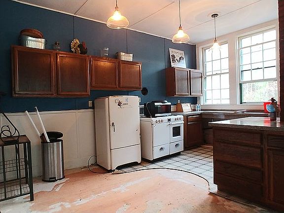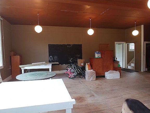 Large heated party room with kitchen on 1st floor. Second story open with storage room and separate room for bathroom. Needs plumbing. Detached heated restroom has 1000 gallon concrete tank . 3 bedroom sfr permit in hand. Drill well .cash only.