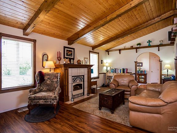This wonderful single level home welcomes you with a lush garden of flowers and large wrap around deck. Full of character with beautiful vaulted wood ceilings and architectural beam accents throughout the main living areas. The home has a nice flow for living with a spacious great room plan. The master bedroom has a walk-in closet, en suite bathroom with dual vanity, and access to the large deck and fully fenced backyard. Updated with laminate wood flooring and featuring gas fireplace, central cooling with heat pump, and solar tubes for added natural light. Located on a corner lot in a quiet neighborhood close to shops, restaurants, parks and Dry Canyon trails. A great home to enjoy Central Oregon living!