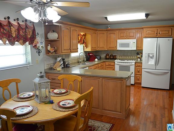 Suburban living with access to 5 fishing lakes AND the convenience of city living with shopping and dining just minutes away. This 3 bedroom/2bath home features updates such as solid surface countertops, hardwood floors, French door refrigerator, built-in microwave, smooth cooktop electric slide-in stove, tile backsplash in kitchen, and many more. You will find the eat-in kitchen amazing for the casual dining and the adjoining formal dining for the more elite gatherings is open to the greatroom. The greatroom has a brick fireplace from floor to ceiling and a raised hearth, with a rustic touch mantle. Adjacent to the formal dining is an over sized sun room to be used as a home office, workout area or just a relaxing area. This basement home sits on 1 1/2 lots that is manicured (1 acre +/-) and the basement area could be finished out if so desired. A desirable outdoor living space is just steps away from back door with grilling quarters. HVAC approx. 4 yrs old. Metal roof. USDA eligible