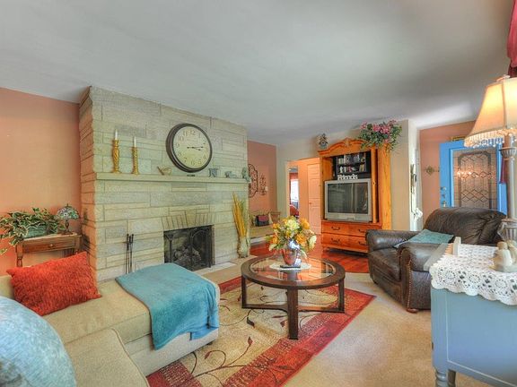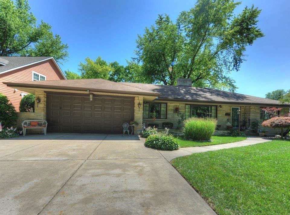 DESIRABLE WICKER PARK ESTATES This is a sprawling stone ranch in a park like setting. Very nice curb appeal. As you walk up to home notice the oversized cement drive & nice landscaping. Enter to living room that has a gas fireplace which is open to dining room and a dream kitchen equipped with plenty of cabinets, granite counters, moveable island, Brazilian cherry hardwood floors. Top of the line appliances including a Jenn Air indoor BBQ. Down hall are all 3 bedrooms of nice size and opposite of bedrooms is your Family Room. Off Family Room is the 3 seasons room with another built in BBQ grill(owner is really going to miss). Back Yard is amazing and secluded. Downstairs is a possible 4th Bedroom, Bathroom and an enormous Family Room with another Gas Fireplace, Wet Bar and another BBQ Grill. Cedar Lined Closets. Speakers & Intercom, Windows 5 years old, Heated attached garage. This home Says ENTERTAINING all over it. GREAT HOME ON A VERY QUIET STREET WITH PARK VIEWS