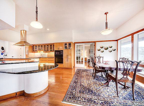 Gated 3.15 acre architect designed estate in Helotes. Expansive hill country views overlooking Government Canyon Park from large windows. Over 1000 sq ft of decks on two levels. Oak & tile flooring throughout. 5 bedrooms & 4 full baths. One bedroom could be a second master or a second living. Chef's kitchen includes ample custom cabinets, two sinks, and two pantries. There is a full walk-out basement w/ a workshop that could be finished as a game/media room. Very energy efficient. No city taxes, MUD or HOA.