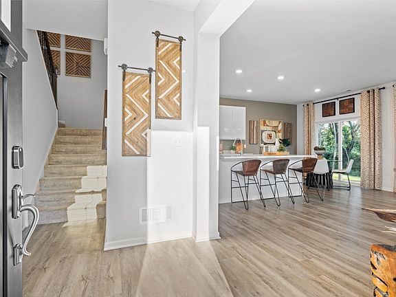 Are you looking for the ease and convenience of space combined with low maintenance? This new Darcy two-story townhome has an appealing contemporary design, with an airy, inviting first-floor Great Room, elegant dining room, modern kitchen, and outdoor patio that all seamlessly meld together in an open concept space. This home has been upgraded to the DESIGNER selection package. The first floor also includes a 1/2 bath for convenience. When you walk upstairs, you'll be greeted with a loft that adds shared living space. Off to one side are two great bedrooms and a full bathroom. Across from the loft is your convenient upstairs laundry. Then, on the opposite side of the floor, you'll find your generouslyuite that includes a walk- sized primary sin closet and on-suite bathroom. Home includes a smart video doorbell, smart lock & smart thermostat! This new community will also include a community pool, walking paths, and a playground. HOA covers snow removal & lawn maintenance. Photos representative of previous home built.