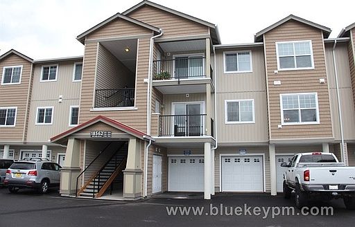 2 bedroom condo built in 2012. Immediate occupancy.Very nice neighborhood with newer condos. This is a second level home and is in excellent condition. Corner fireplace in family room adds a great ambiance for cooler evenings. Sliding glass doors give easy access to the balcony which has a great view of the grassy area below. There is also some storage off the balcony. Granite counter top on kitchen bar with tile on the kitchen counters. Stainless steel appliances and plenty of cabinet space. Good-sized master bedroom with walk in closet, master bathroom with tile top and an over-sized bathtub with shower. Comes with a nice washer and dryer set. Located just off NW 185th Ave and Walker Rd, this home offers simple access to Hwy 26. $1095 security deposit, $35 application fee. Blue Key Property Management, 503-505-6461. See us online at www.bluekeypm.com