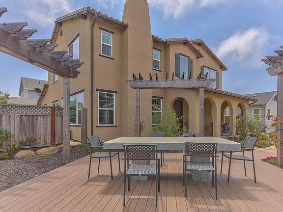 This gorgeous Mediterranean style East Garrison home will warm your heart the moment you walk in. The home offers a first floor Jr. Master bedroom suite and a 1/2 bathroom with a spacious downstairs living room. The gourmet kitchen with white cabinets features an over sized island made of granite, stainless steel appliances and a large pantry. Enjoy the yard just off the kitchen slider and another small yard area for planting your vegetables. The upstairs has two bedrooms which includes the master bedroom and a den/4th bedroom. Amazing Salinas Valley views from upstairs!!! The 2 car garage is equipped with a car charger for your electric car and the home has owned Solar Panels so your power bill will be less than $10.00 per month AND a TESLA power wall in case the power goes out! Water softener is in garage (leased).