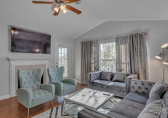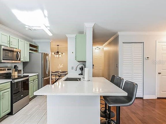 MOVE IN READY!! Beautifully updated 3-bedroom, 2-bath condo on the top floor in the highly sought after community of Equestrian parc, located in the heart of New Tampa right off Bruce B Downs. It is close to shopping, restaurants, I-75 highway, Movie theaters, & 15 minutes from USF. Equestrian Parc is a gated community that has a community pool, clubhouse with media and billiard rooms, fitness center, car-wash station, and tennis & volleyball courts. The condo is bright and very spacious, this rare corner unit offers peaceful views, no upstairs neighbors, and a spacious split floorplan. Inside, you'll find wood and laminate flooring all throughout, a fully updated kitchen, and a large living room with a cozy fireplace. Enjoy your morning coffee or evening breeze from the screened-in balcony with outdoor storage. The oversized primary suite includes two walk-in closets and a private bath with double sinks and a tub/shower combo. Two additional bedrooms, each with walk-in closets, are on the opposite side of the unit for added privacy. This unit is a must see