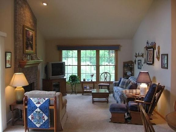 Sharp and clean side by side ranch with brick fireplace in vaulted living center. Formal dining, raised oak panel kitchen with eat-in dinette. Six panel doors, 2 bedrooms plus french door den. Large, vaulted master suite with whirlpool tub bath and glass wall shower. Full basement and 2.5 car GA. This south facing unit is a premier location in Heather Ridge with deck overlooking wooded backyard. Nicely landscaped with mature shade trees. Includes all appliances. Occupancy can be quick.