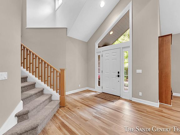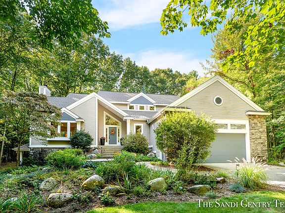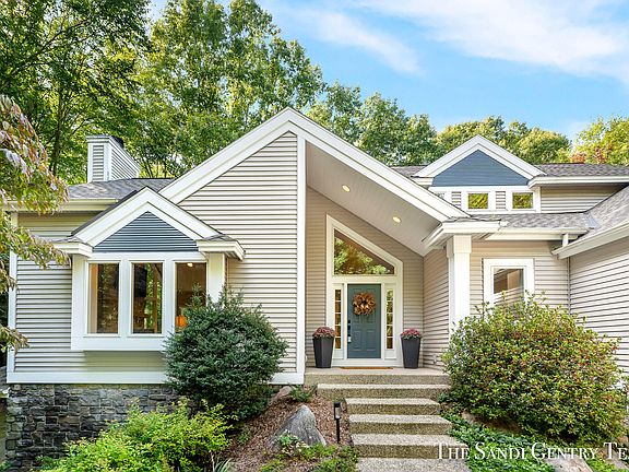 Nestled among nearly 3 wooded acres, this custom-built and renovated home boasts 5 beds, 4.5 baths, and over 4,600 sq ft. As you step into the great room, you'll be greeted by new luxury flooring, 22 ft ceilings adorned with a stunning stone fireplace, and an inviting open floor plan that seamlessly connects you to each part of the house. Hosting gatherings is effortless with an expansive dining area and newly renovated deck. The spacious gourmet kitchen boasts quartz countertops, custom maple cabinetry, a Sub-Zero fridge, and double convection ovens. Find your personal retreat in the completely remodeled main-floor primary suite. The upper level hosts two additional bedrooms, office with built-ins, storage space, and a large full bath. The walkout lower level is a haven of amenities, offering a spacious full kitchen, inviting family room, ensuite, a dedicated exercise area, and game room. Step outside to discover an abundance of nature trails, in-ground trampoline, large additional garage with finished space, and much more! Ideal location between the shores of Lake Michigan and Spring Lake, in award-winning Spring Lake School District.