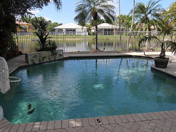 Beautiful well maintained home. Many upgrades. Huge master on 2nd floor with two large walk in closets. Three additional bedrooms upstairs. One bedroom downstairs with private bath perfect for visitors, in-laws, nanny, office or playroom. The loft upstairs provides extra living space. Enjoy the serene lake view from your screen enclosed covered patio and private heated salt-water pool. Florida living at it's best! New roof and two new high efficiency air conditioners to save on your electric bill. Fenced in backyard and security baby fence around the pool. The Shores is a gated, upscale community with a huge clubhouse including pool, tennis, exercise facilities, basketball, tot lot and kids play room. Walk to South County Regional Park across the street. A rated Boca schools. Lawn and pool service is included.