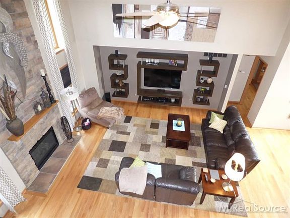 Stunning Macomb Twp split-level with many updates including hardwood floors, roof, windows, granite & more! Enter through foyer with hardwood floor & chandelier. Great room with hardwood floor, built-in entertainment center, gas fireplace with mantle & stone surround. French doors leading to den with hardwood floor & built-in bookshelves. Large kitchen with hardwood floor, oak cabinetry, granite counters, island, tiled backsplash, walk-in pantry, built-in china hutch and appliances. Master suite with hardwood floor, walk-in closet plus wall closet and full bath with double sink, garden tub and shower. Upstairs offers 12x10 loft, 3 spacious bedrooms and full bath. Lovely finished basement with wet bar, full bath and 5th bedroom. First floor laundry with washer & dryer. Brick paver patio leading to built-in pool and spacious treed yard. 3 car attached garage. Brick paver walkway leading to front entrance. One year home warranty!