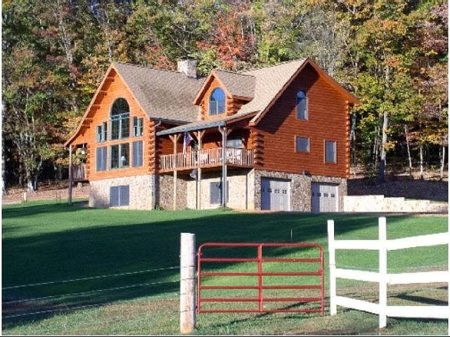 Private and secluded setting with custom log home on 17.27 acres. Home features large great room with exposed beams and double faced fireplace. Upper loft features Master Suite with sitting/office area, bedroom and bath with Jacuzzi. Full basement with two car garage. 36x60 barn leads to fenced garden