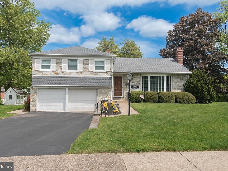 Charming 4 Bedroom, 3106 square foot Split Level Home with one of the largest yards in Brentwood Manor featuring an open floor plan addition…a rare find indeed! As you enter the home you will be impressed with the beautiful hardwood floors that can be found throughout the first floor. The spacious formal living room features a floor-to-ceiling stone wood burning fireplace and a bright wood -trimmed bay window with Hunter Douglas Silhouette motorized blinds providing a cascade of natural light. Adjoining this area there is a formal dining room. A pleasant surprise awaits you as you enter the 500 square foot family room/casual dining area addition with a wall of Marvin windows overlooking the expansive green back yard. This inviting, spacious family room area features a vaulted beam ceiling with plenty of recessed lighting and flows out to a large open Trex deck overlooking the greenery in the rear yard. This family room is complemented with tons of natural light from the many windows. For your convenience, adjacent to this space is one of two powder rooms found in the house. The family room flows into the adjoining updated kitchen with granite countertops that features a double oven, Kitchen Aid appliances and lots of cabinets. All these wonderful features make this the perfect home for family gatherings and entertaining. On the lower level there is an additional living space ideal for a playroom, den, or large office. Nearby you will find the laundry/utility room with lots of storage leading to a remodeled powder room. From this level you can access the garage or the side of the property where a custom built wooden playhouse can be found for the little ones to enjoy. On the upper level of the home you will find a well-appointed master bedroom with sound-resistant glass windows and an attached modern full bath. Three additional bedrooms and a full updated hall bath are also located on this floor with hallway stairs leading to a large attic for your storage needs. On the outside, the large Trex deck overlooks a well maintained two-tiered landscaped backyard with elegant stone steps leading to a lower tier making this area ideal for entertaining and activities. A large shed in the backyard provides additional storage for snow shovels, bikes, or whatever you like. Brand new roof installed in 2022. Pride of ownership is evident in all details of this property. Conveniently located close to Target, additional shopping, parks, transportation, Abington Hospital, municipal buildings, and Abington Schools, what more could you ask for? Don't let this rare opportunity slip away, schedule your private showing today!!!