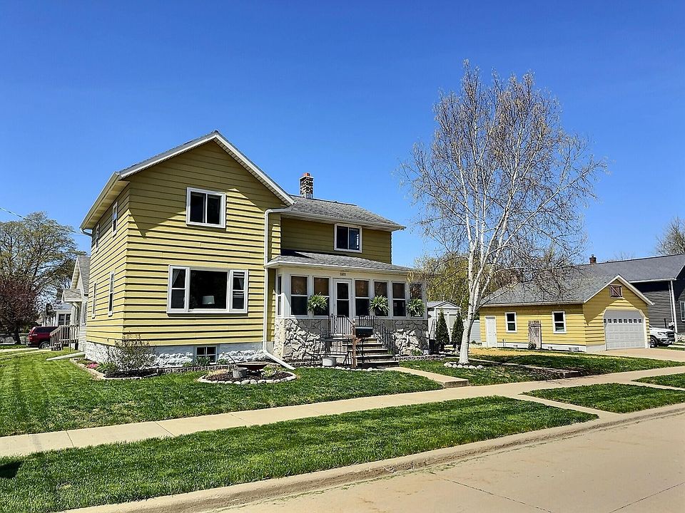 Charming country chic style meets modern updates in this spacious 5 Bedroom, 2 Bath home on the south side of Oshkosh! This beautifully maintained property features multiple upgrades throughout, including a striking electric fireplace that adds a cozy touch to the living area. Enjoy the convenience of a detached 2.5-car garage with extra height—perfect for storage or larger vehicles. With a functional layout, stylish finishes, and a desirable location, this home is move-in ready and full of character! Showings start Saturday 5/10/2025. Exposed floor joists in living room.
