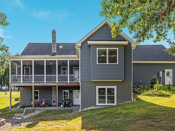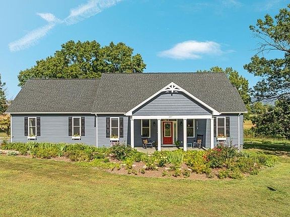 Welcome to this stunning custom-built home nestled on 5 private acres in Edinburg! Thoughtful finishes and functionality flow throughout, including LVP flooring, granite countertops, soft-close cabinetry, and stainless steel appliances. The open concept kitchen with spacious island opens to a cozy living room featuring a gas fireplace with a custom reclaimed antique mantel. The main-level primary suite offers a walk-in closet with custom shelving and a spa-like en suite bath with a custom-tiled walk-in shower. Two additional bedrooms and a full bath with another tiled shower complete the main level. Additional features include a large laundry room with granite counters and a utility sink, WiFi-enabled timers for exterior and interior lighting, and an oversized two-car garage with an 8' door. The fully unfinished walk-out basement comes with rough-in plumbing for a bath, ready for your final touches. Outdoor living is equally impressive with a large screened rear porch boasting mountain views, a firepit with custom stone walkways, and mature perennial landscaping. This property is the perfect private retreat—move in and make it your own!